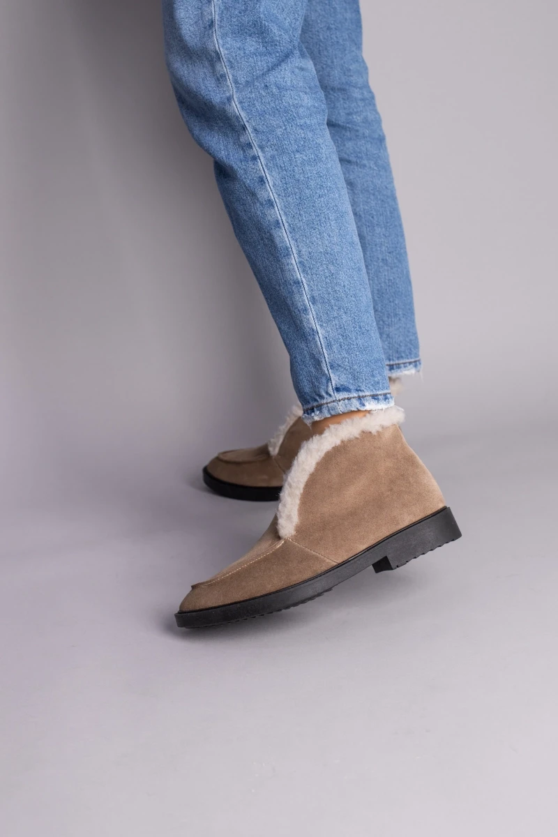 Жіночі зимові лофери ShoesBand Капучіно натуральні замшеві всередині напіввовна 36 (23 см) (S52171-1з)